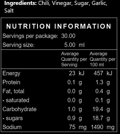 Vinegar, chilli, garlic, sugar, salt