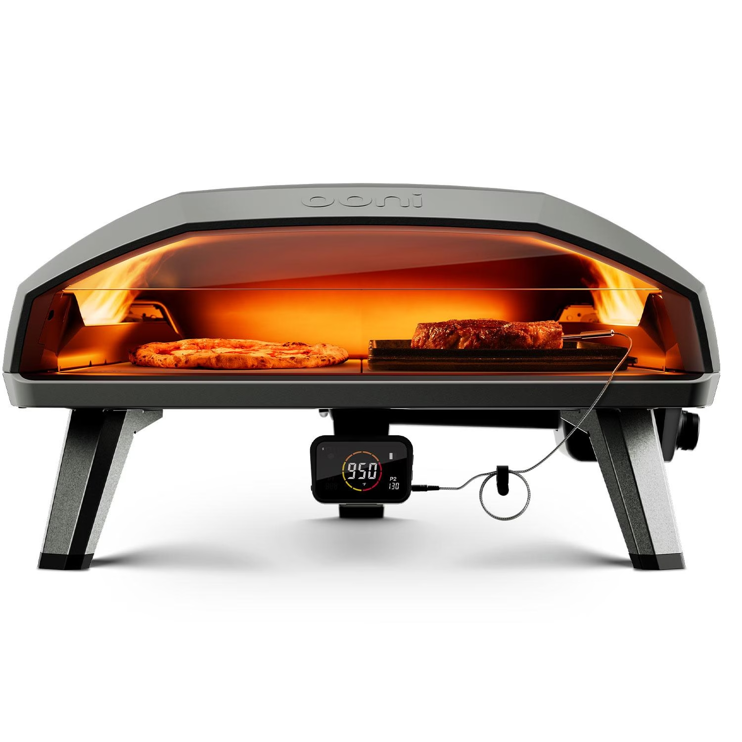 Compatibility and additional functions This advanced pizza oven is suitable not only for pizzas, but also for a variety of other dishes. Thanks to compatible Ooni cookware, users can expand their culinary skills and always achieve the ideal cooking temperature with the included food thermometers.